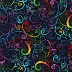 Hi Fashion Fabric - Rainbow Scrolls Black 1660-7244